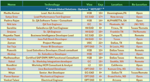 I am reaching out to provide you with a list of available consultants proficient in the following technologies. I kindly request to be included in your distribution list for any future contract opportunities, particularly in C2C roles with your esteemed clients. For any inquiries or to receive resumes, please do not hesitate to