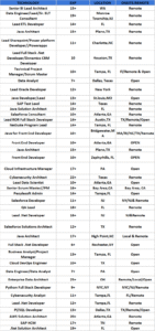 | Java Developer/Lead | 13+ | St.louis,MO | Open |
