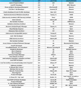 | Sr Devops Dev ( Azure ) | 14+ | Jacksonville FL | Open |